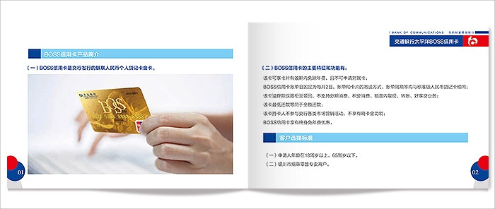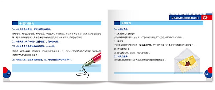 為交通銀行推廣太平洋BOSS信用卡設(shè)計宣傳冊頁。